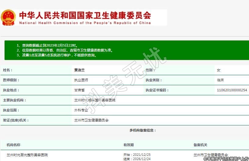 主要執(zhí)業(yè)機構(gòu):蘭州時光相伴整形美容醫(yī)院
