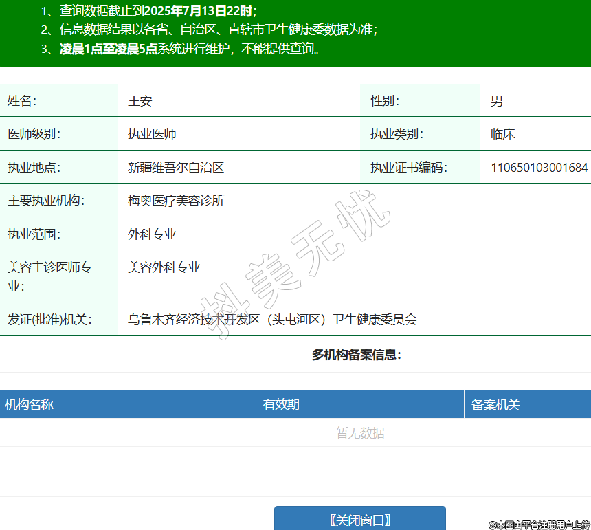 姓名:王安性別:男醫(yī)師級(jí)別:執(zhí)業(yè)醫(yī)師執(zhí)業(yè)類(lèi)別:臨床執(zhí)業(yè)地點(diǎn):新疆維吾爾自治區(qū)執(zhí)業(yè)證書(shū)編碼:110650103001684主要執(zhí)業(yè)機(jī)構(gòu):梅奧醫(yī)療美容診所執(zhí)業(yè)范圍:外科專(zhuān)業(yè)美容主診醫(yī)師專(zhuān)業(yè):美容外科專(zhuān)業(yè)發(fā)證(批準(zhǔn))機(jī)關(guān):烏魯木齊經(jīng)濟(jì)技術(shù)開(kāi)發(fā)區(qū)(頭屯河區(qū))衛(wèi)生健康委員會(huì) -