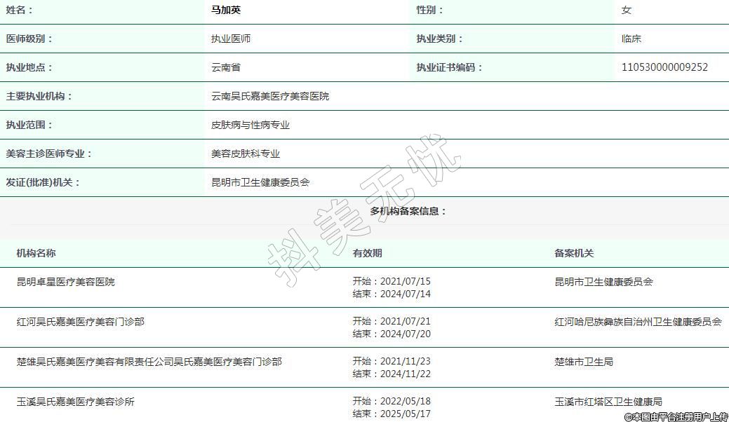 昆明吳氏嘉美執(zhí)業(yè)醫(yī)生
