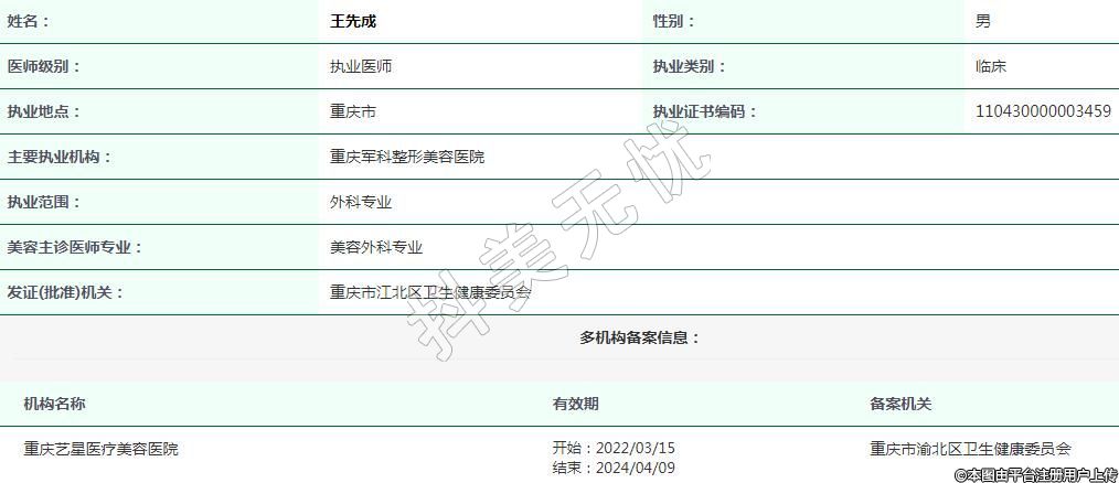 重慶藝星醫(yī)療美容執(zhí)業(yè)醫(yī)師 -