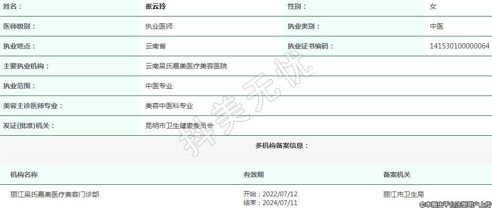 昆明吳氏嘉美執(zhí)業(yè)醫(yī)生