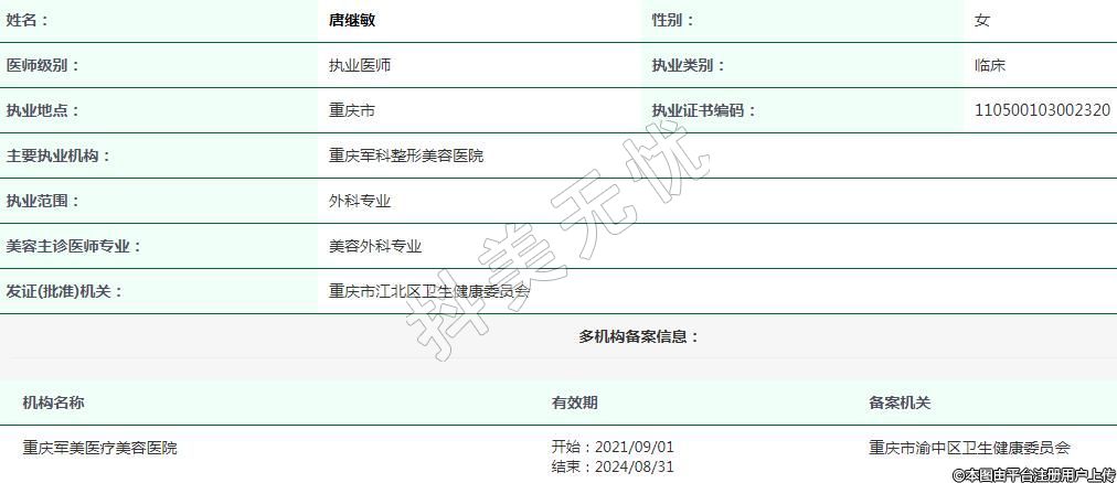主要執(zhí)業(yè)機構(gòu):重慶軍科整形美容醫(yī)院