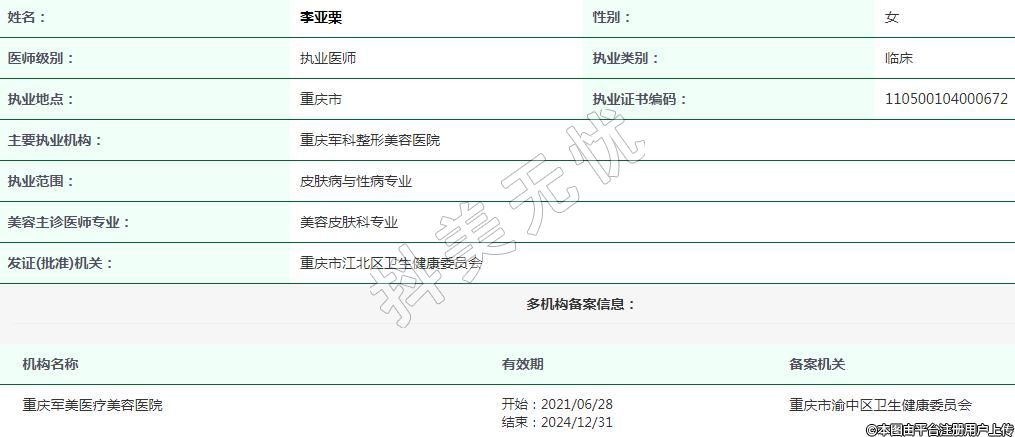 主要執(zhí)業(yè)機構:重慶軍科整形美容醫(yī)院