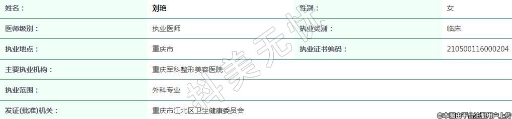 重慶軍科醫(yī)療美容執(zhí)業(yè)醫(yī)師