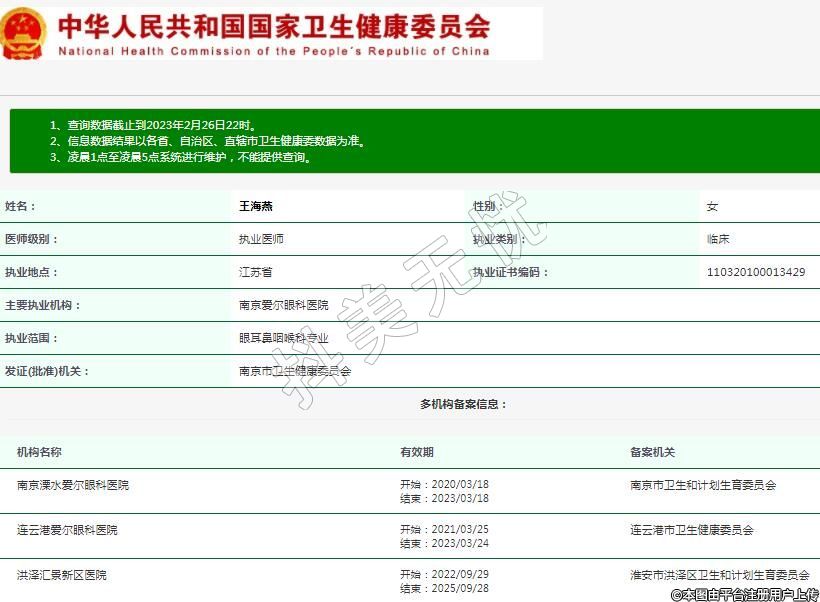 主要執(zhí)業(yè)機(jī)構(gòu):南京愛爾眼科醫(yī)院