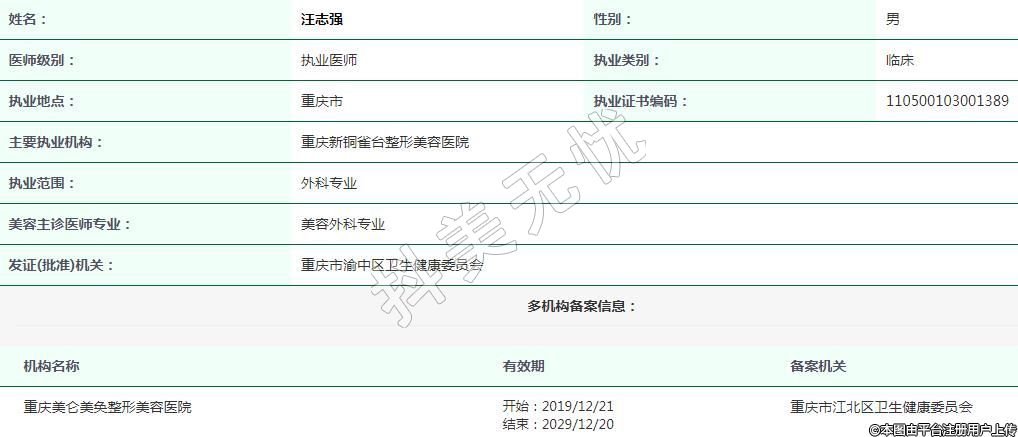 重慶新銅雀臺醫(yī)療美容執(zhí)業(yè)醫(yī)師