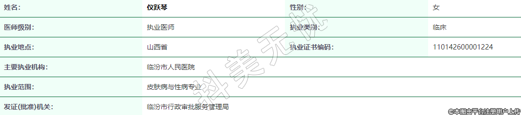 執(zhí)業(yè)范圍:皮膚病與性病專(zhuān)業(yè)