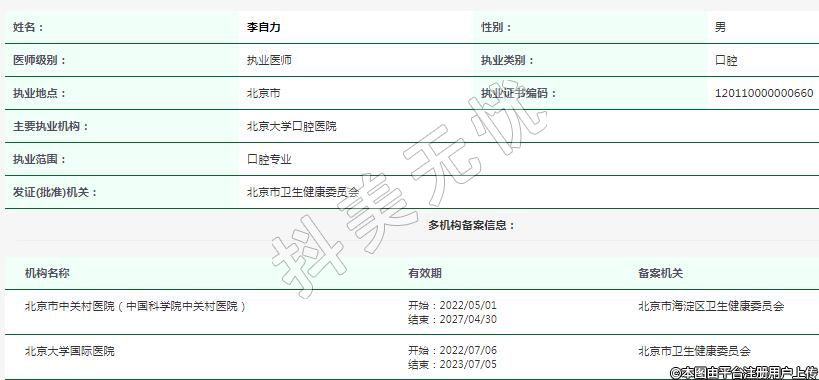 主要執(zhí)業(yè)機構(gòu):北京大學(xué)口腔醫(yī)院