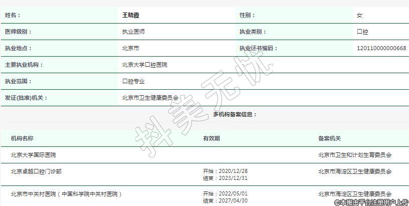 主要執(zhí)業(yè)機構(gòu):北京大學(xué)口腔醫(yī)院
