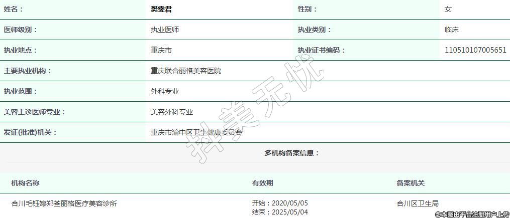 主要執(zhí)業(yè)機(jī)構(gòu):重慶聯(lián)合麗格美容醫(yī)院