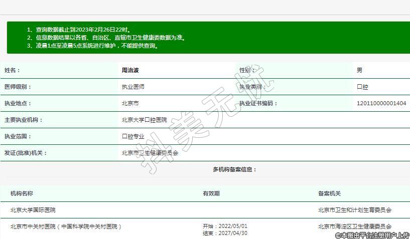 主要執(zhí)業(yè)機構:北京大學口腔醫(yī)院