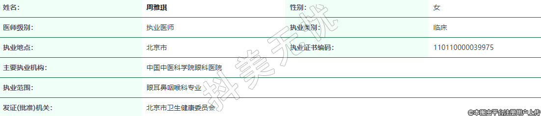 執(zhí)業(yè)范圍:眼耳鼻咽喉科專業(yè)