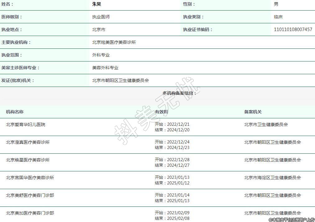 主要執(zhí)業(yè)機(jī)構(gòu):北京炫美醫(yī)療美容診所