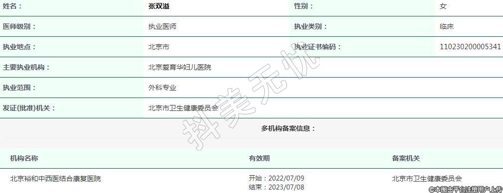 主要執(zhí)業(yè)機(jī)構(gòu):北京愛育華婦兒醫(yī)院