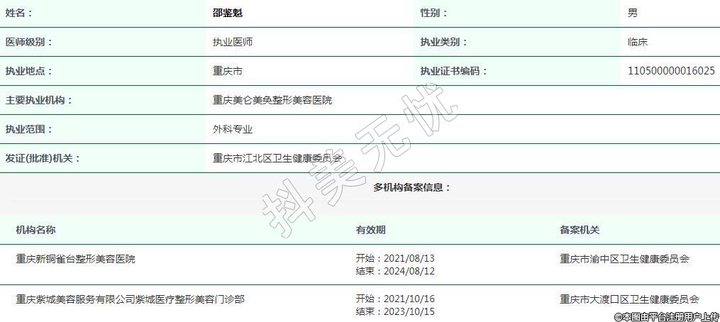 主要執(zhí)業(yè)機(jī)構(gòu):重慶美侖美奐整形美容醫(yī)院