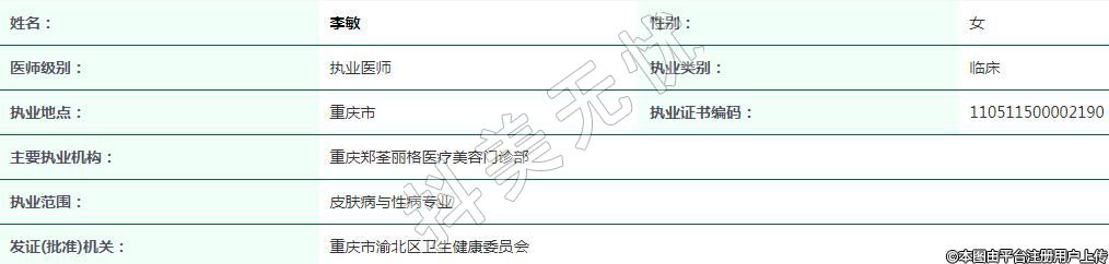重慶鄭荃麗格醫(yī)療美容執(zhí)業(yè)醫(yī)師