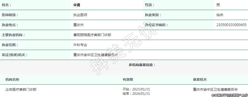 重慶企杏醫(yī)療美容執(zhí)業(yè)醫(yī)師 -