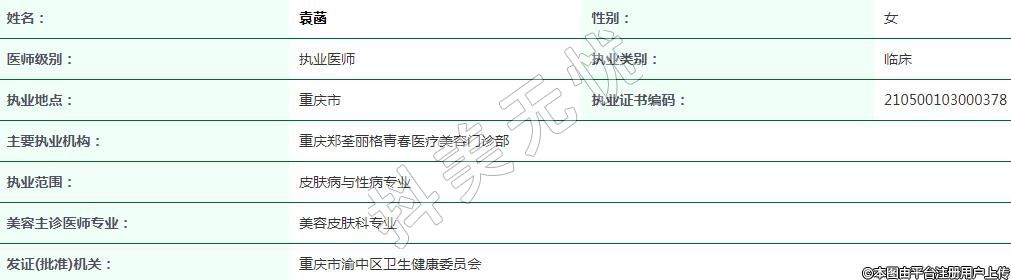 重慶鄭荃麗格青春醫(yī)療美容執(zhí)業(yè)醫(yī)師
