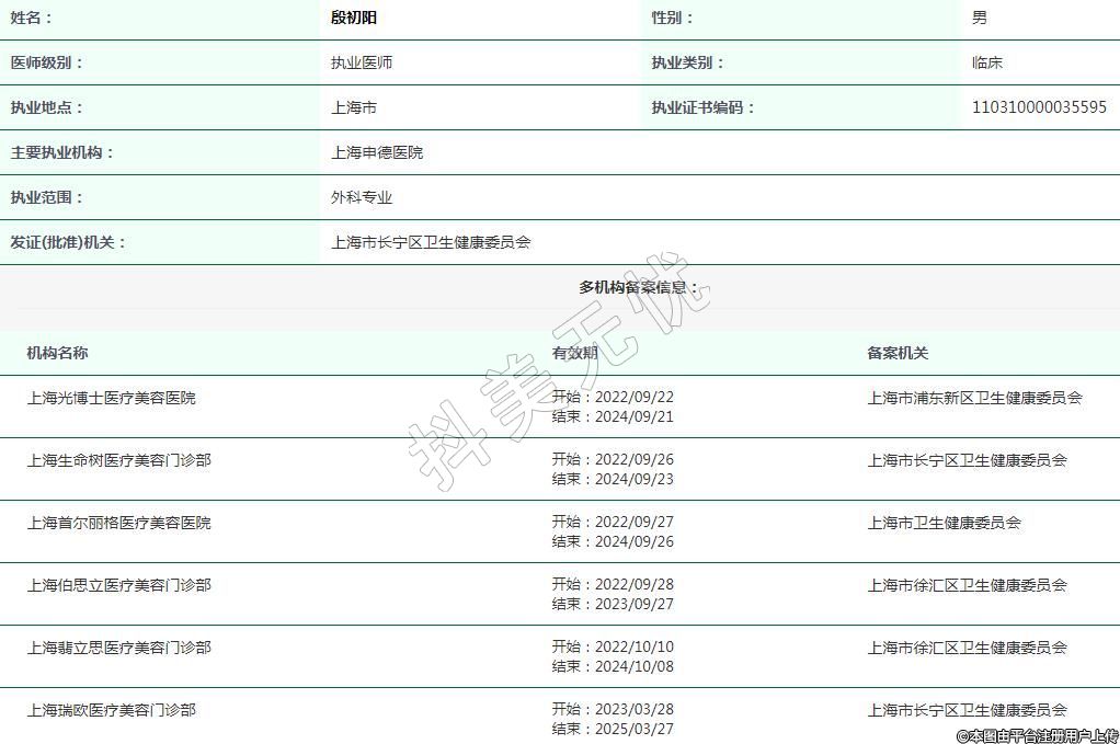 上海申德醫(yī)院醫(yī)療美容執(zhí)業(yè)醫(yī)師