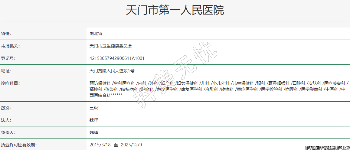 發(fā)證(批準)機關(guān):天門市衛(wèi)生健康委員會