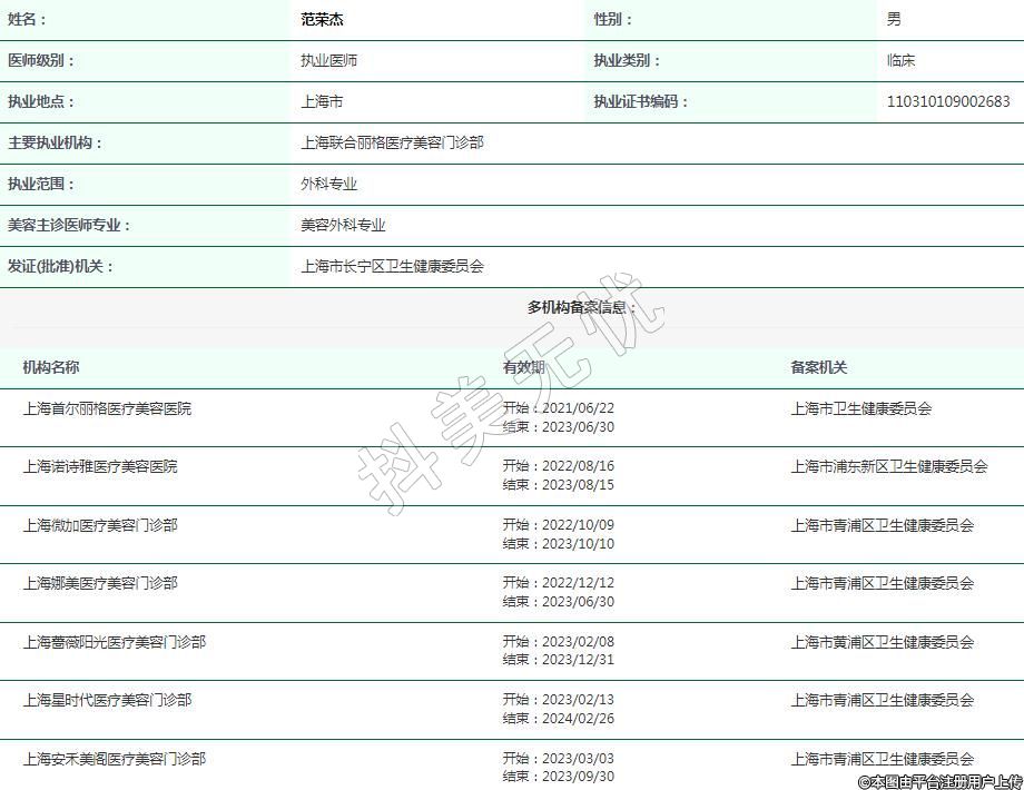 上海薔薇陽(yáng)光醫(yī)療美容執(zhí)業(yè)醫(yī)師