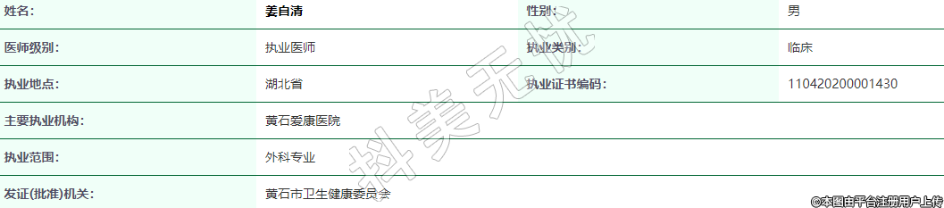 執(zhí)業(yè)地點:湖北省