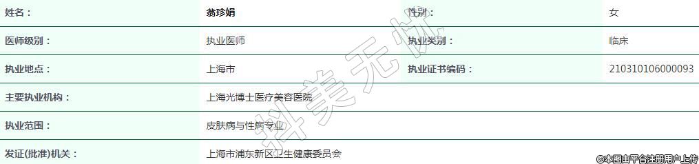 上海光博士醫(yī)療美容執(zhí)業(yè)醫(yī)師