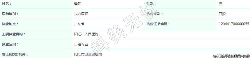 執(zhí)業(yè)范圍:口腔專業(yè)