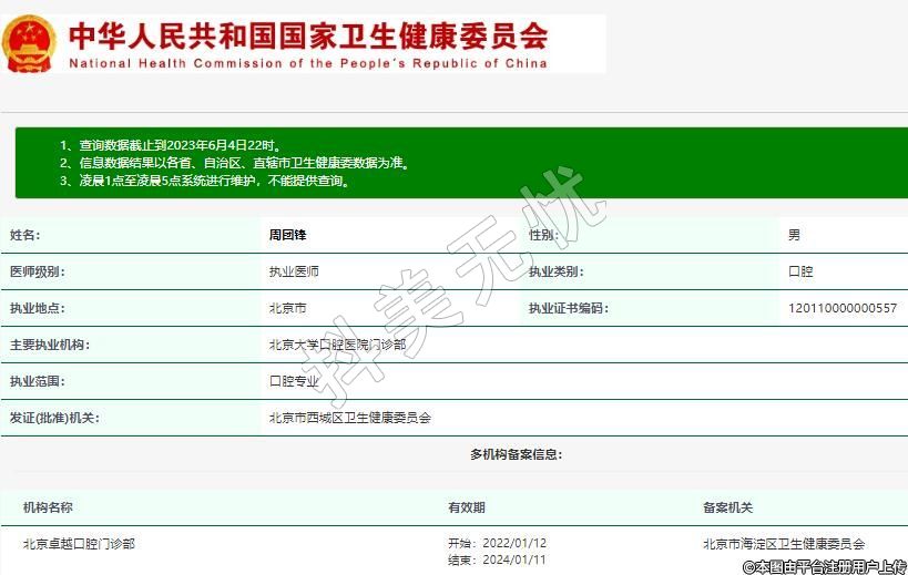 主要執(zhí)業(yè)機構:北京大學口腔醫(yī)院門診部