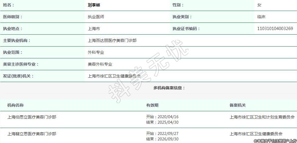 上海百達(dá)麗醫(yī)療美容執(zhí)業(yè)醫(yī)師