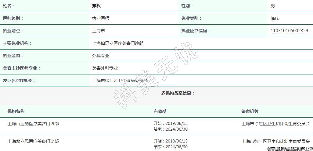 上海百達麗醫(yī)療美容執(zhí)業(yè)醫(yī)師