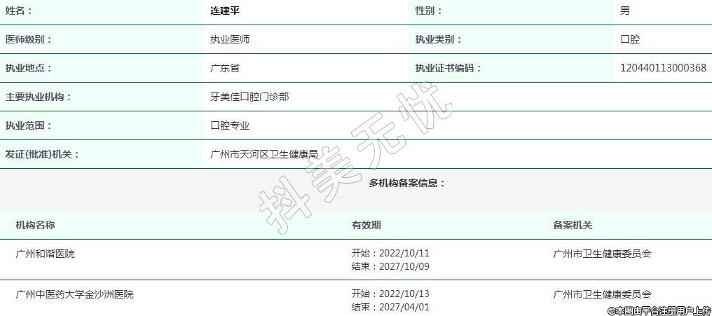 主要執(zhí)業(yè)機構(gòu):牙美佳口腔門診部