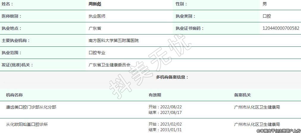 執(zhí)業(yè)范圍:口腔專(zhuān)業(yè)
