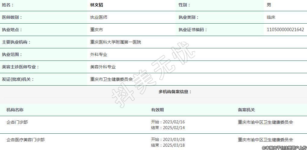 重慶醫(yī)科大學附屬第一醫(yī)院醫(yī)療美容執(zhí)業(yè)醫(yī)師