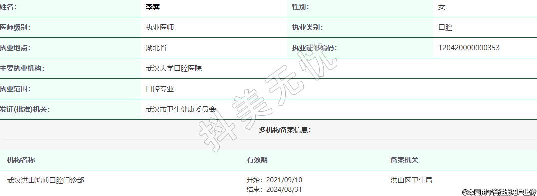 主要執(zhí)業(yè)機構:武漢大學口腔醫(yī)院
