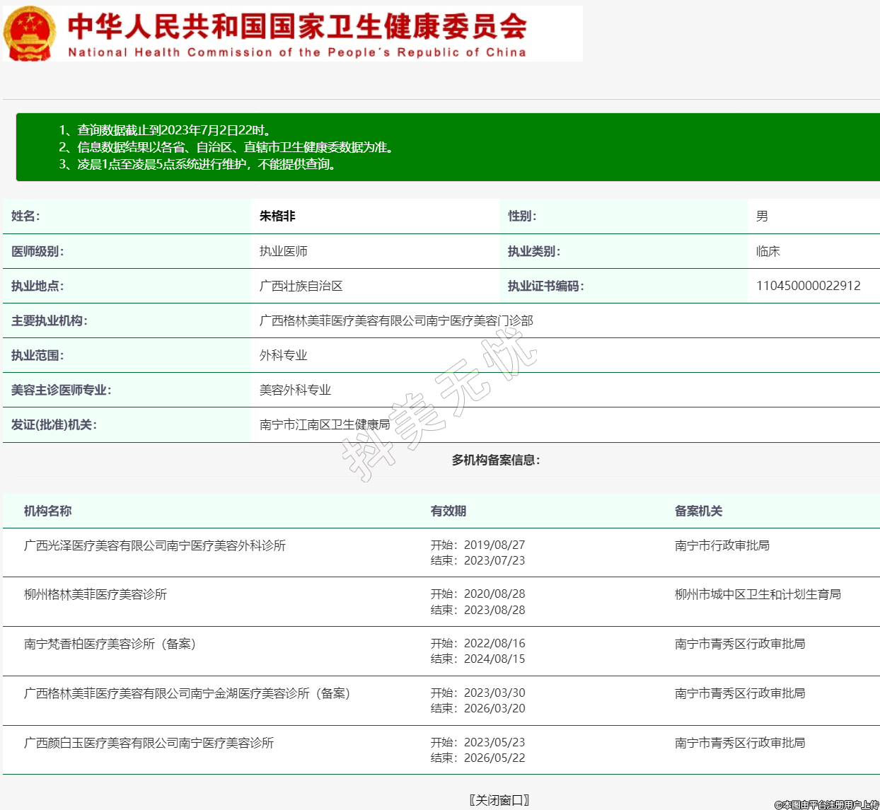 主要執(zhí)業(yè)機構:廣西格林美菲醫(yī)療美容有限公司南寧醫(yī)療美容門診部