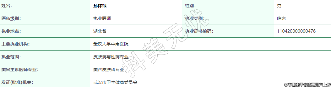 執(zhí)業(yè)范圍:皮膚病與性病專業(yè)