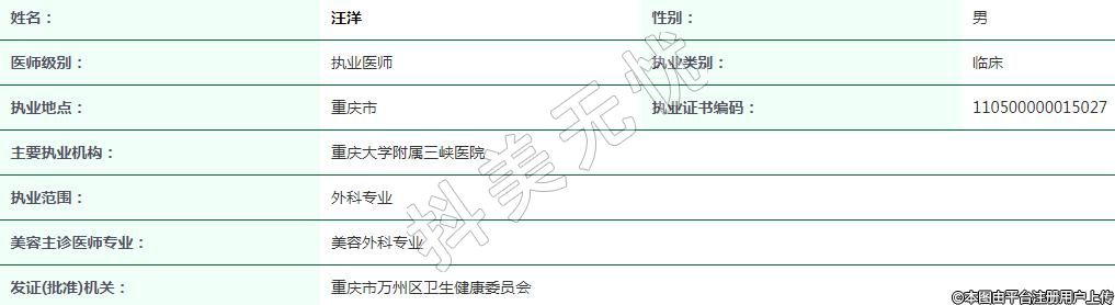 重慶大學(xué)附屬三峽醫(yī)院整形外科執(zhí)業(yè)醫(yī)師
