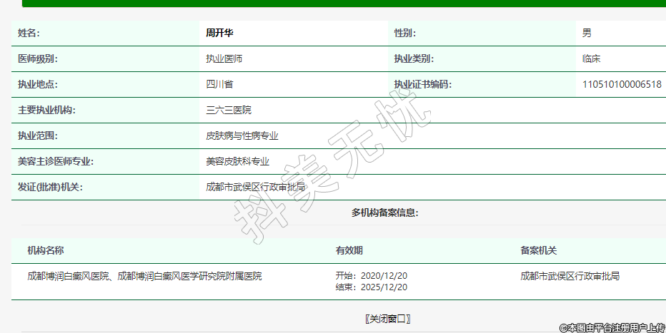 執(zhí)業(yè)范圍:皮膚病與性病專業(yè)