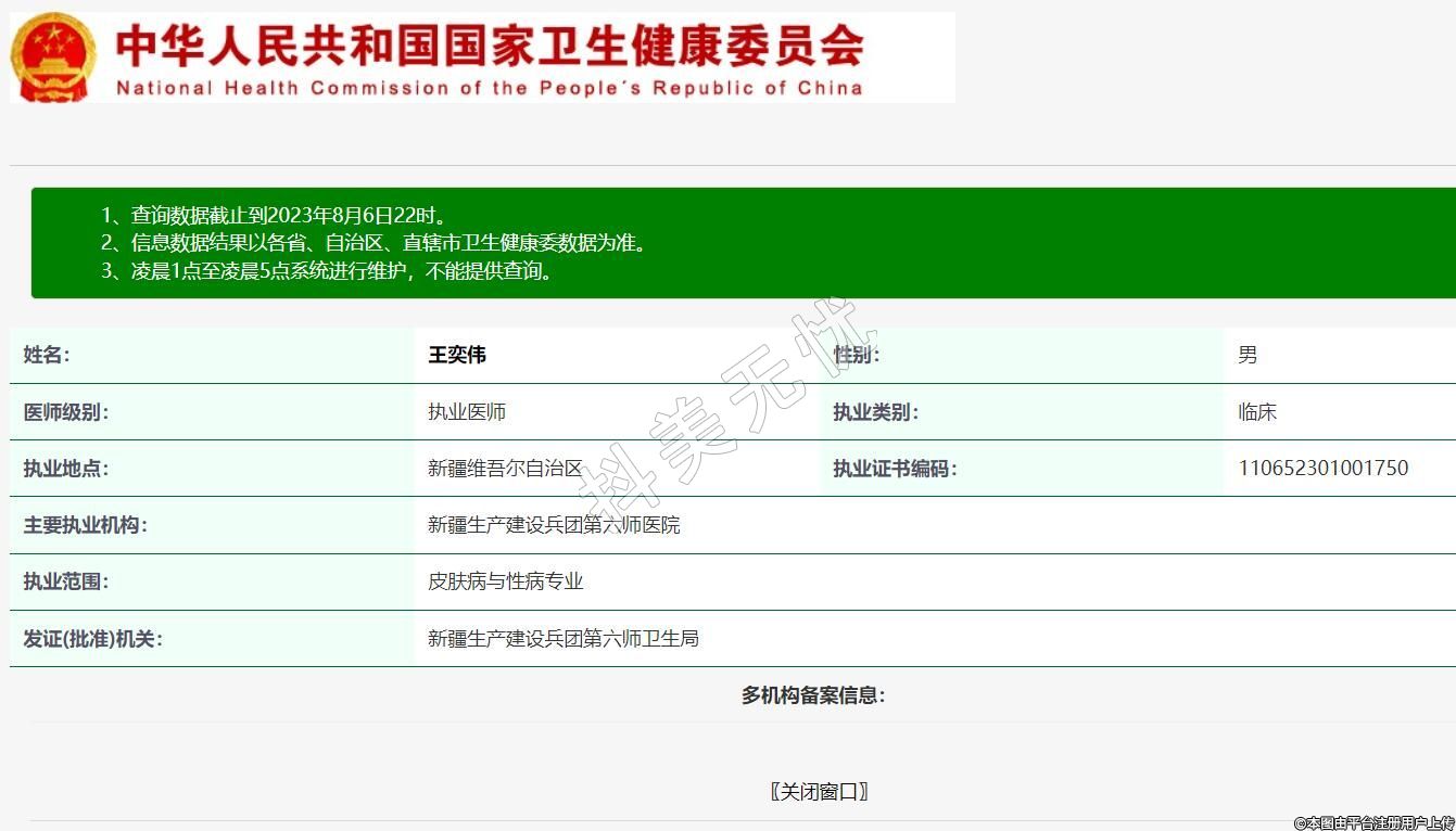 發(fā)證(批準(zhǔn))機(jī)關(guān):新疆生產(chǎn)建設(shè)兵團(tuán)第六師衛(wèi)生局