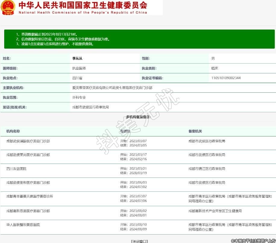 主要執(zhí)業(yè)機(jī)構(gòu):愛美蒂亞醫(yī)療美容有限公司武侯七里路醫(yī)療美容門診部