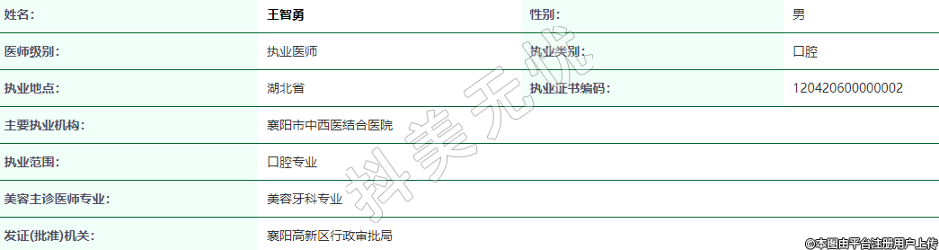 執(zhí)業(yè)范圍:口腔專業(yè)