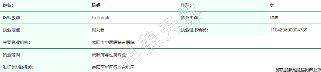 執(zhí)業(yè)范圍:皮膚病與性病專業(yè)