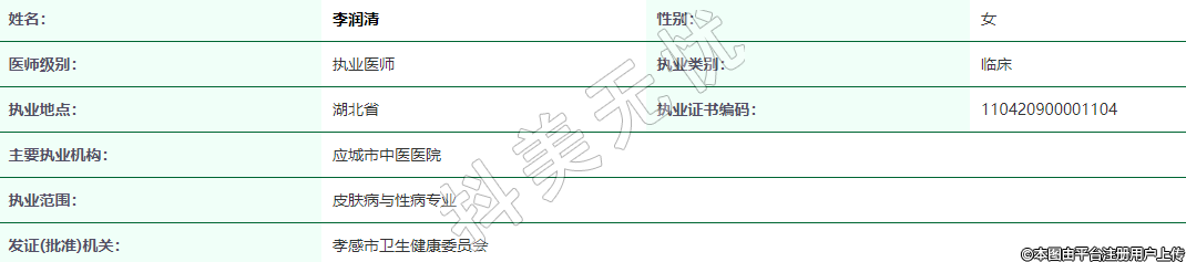 執(zhí)業(yè)范圍:皮膚病與性病專(zhuān)業(yè)