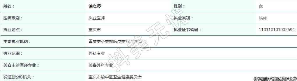 主要執(zhí)業(yè)機構(gòu):重慶美圣美邦醫(yī)療美容門診部