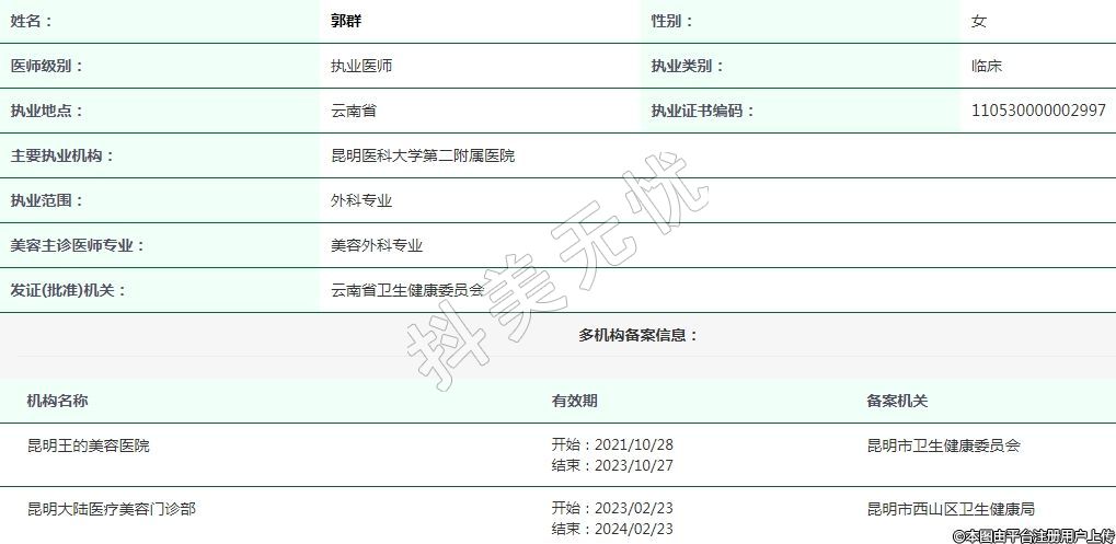 昆明大陸醫(yī)療美容執(zhí)業(yè)醫(yī)師 -