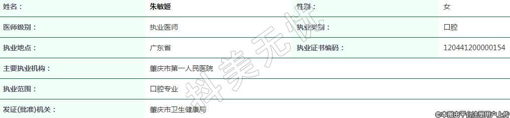 執(zhí)業(yè)范圍:口腔專(zhuān)業(yè)