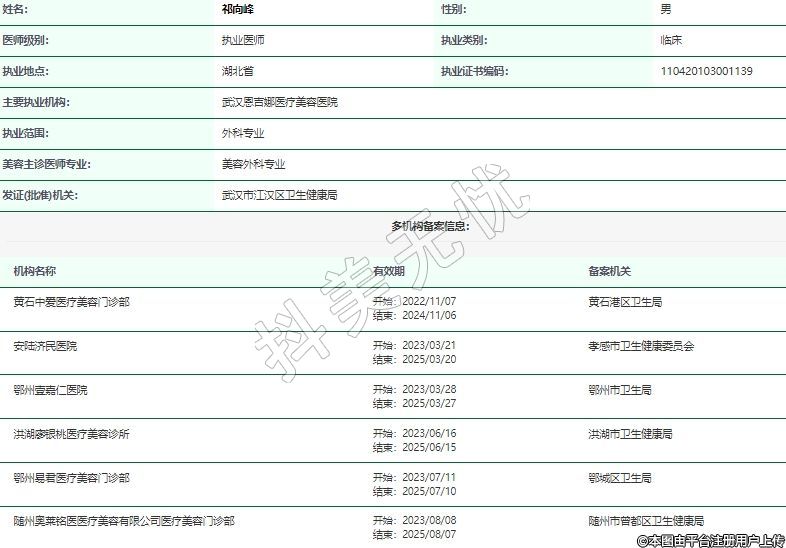 主要執(zhí)業(yè)機構(gòu):武漢恩吉娜醫(yī)療美容醫(yī)院