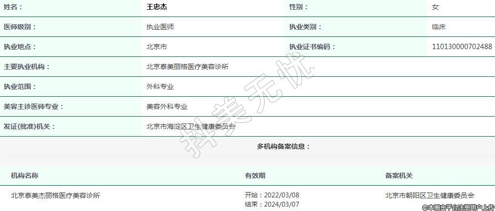 主要執(zhí)業(yè)機(jī)構(gòu):北京泰美麗格醫(yī)療美容診所