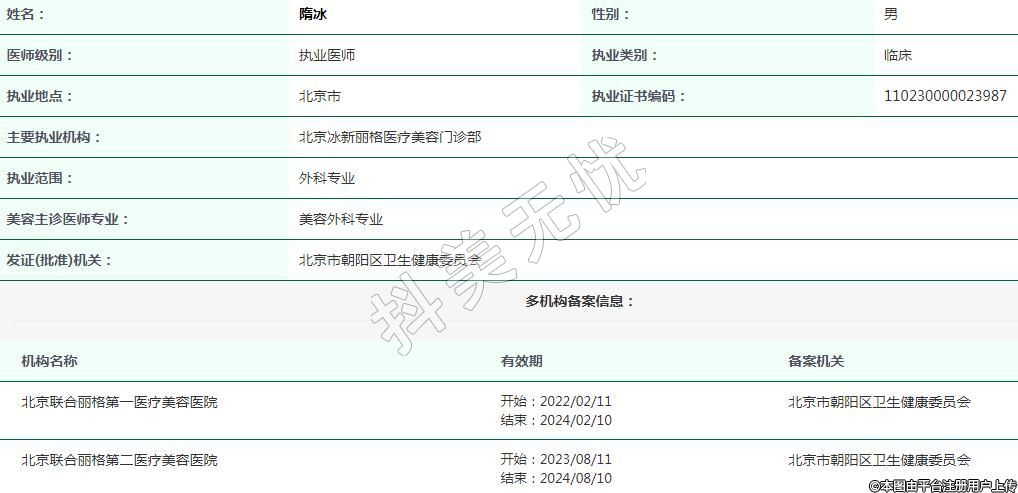 主要執(zhí)業(yè)機(jī)構(gòu):北京冰新麗格醫(yī)療美容門診部